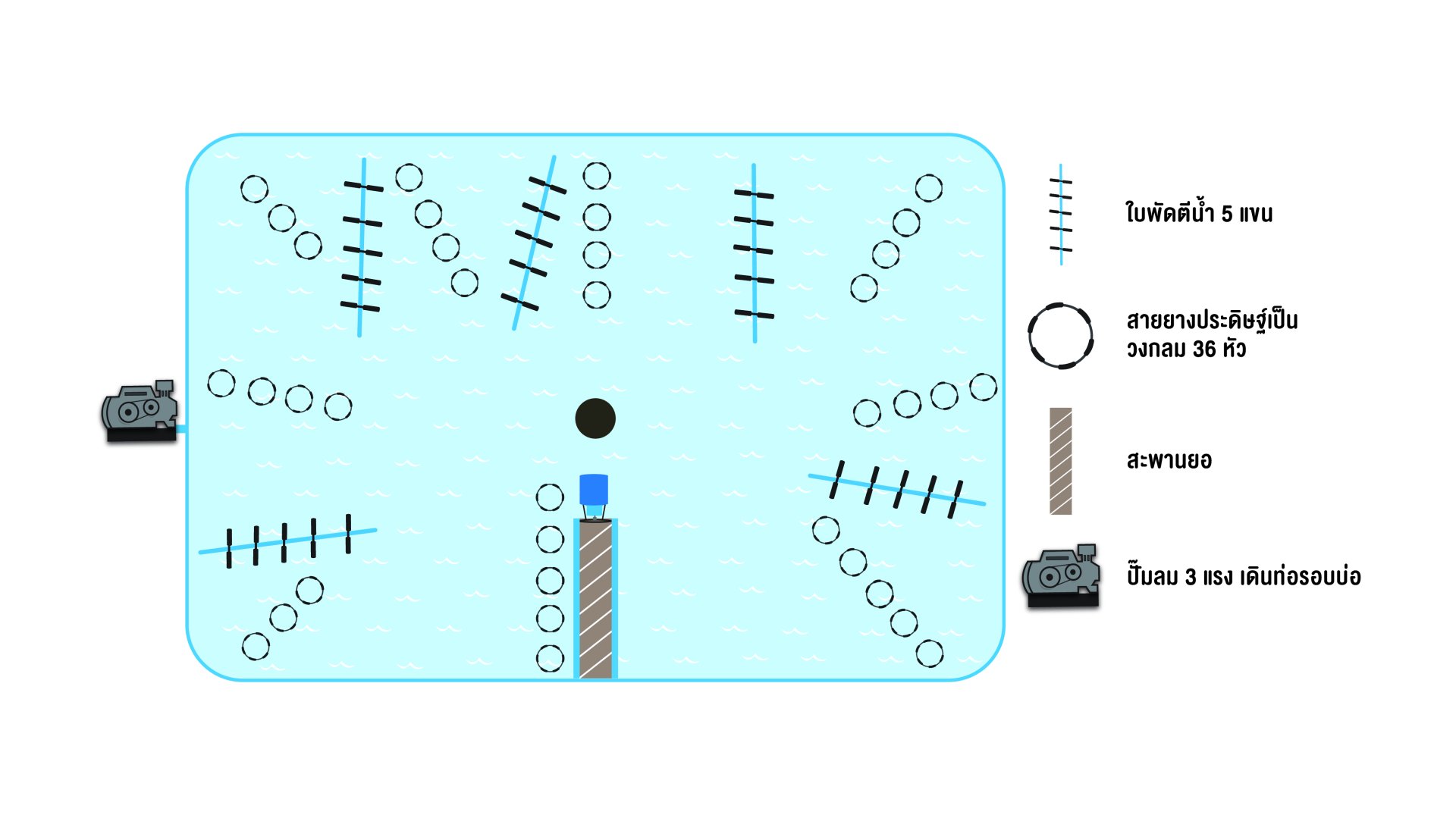 ต่อกับข้อต่อสามทาง นำมาขดเป็นรูปแบบวงกลมใช้งานในบ่อเลี้ยง ช่วยเสริมออกซิเจนภายในบ่อเพื่อรักษาคุณภาพน้ำให้ดีอยู่ตลอดเวลา ส่งผลให้น้ำในบ่อเน่าเสียช้าลง เสริมด้วยใบพัดตีน้ำเพื่อช่วยในการรวมเลนก้นบ่อ และดูดออกเพื่อลดการเกิดของเสียในน้ำ
